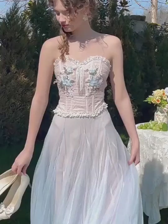 Pastel Bloom Embroidered Corset & Tulle Skirt