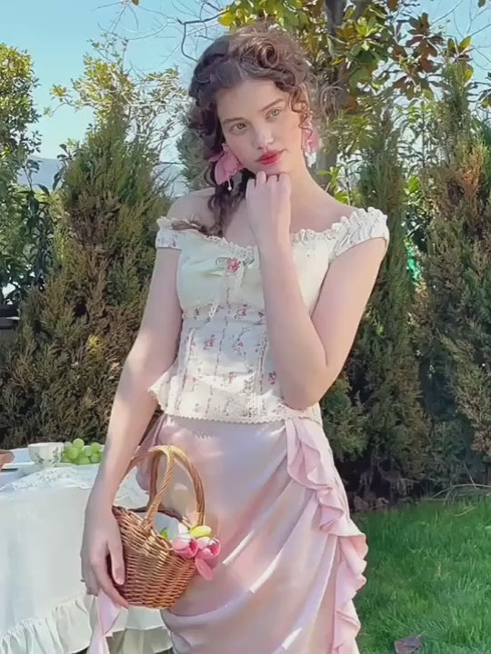 Floral Lace Off-Shoulder Corset Top & Skirt