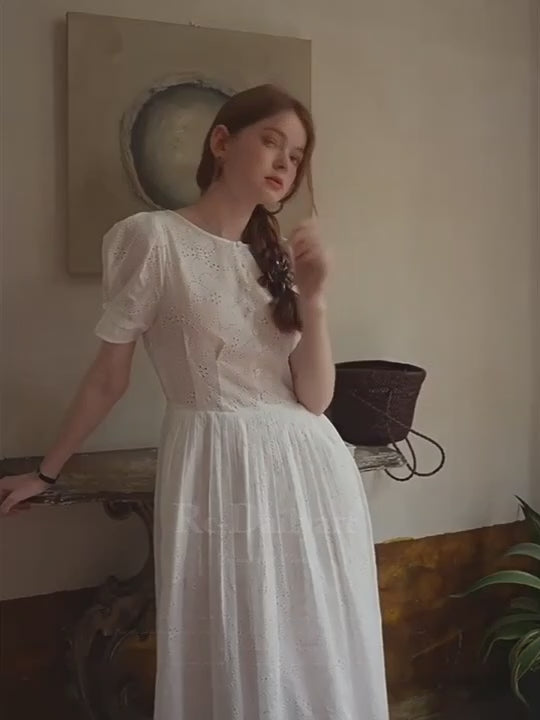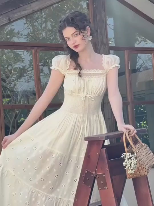 Cottagecore White Eyelet Lace Summer Dress