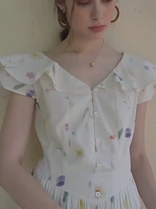 Ruffle Neckline Vintage Daisy Garden Dress