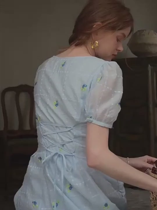 Dreamy Blue Blossom Embroidered Dress