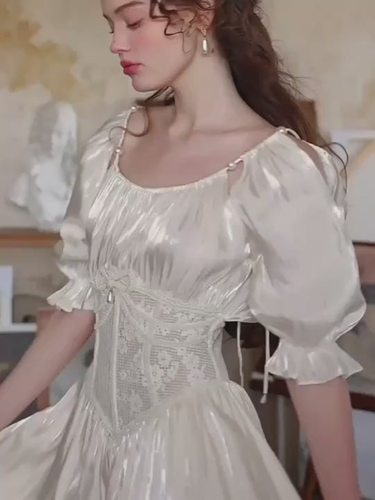 Ivory Cottagecore Lace Trim Dress