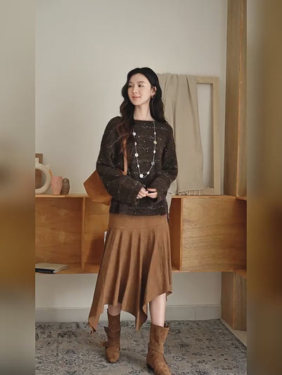Embrace the warmth of autumn with this cozy chocolate knit sweater, designed with delicate speckled yarns that add a touch of whimsy to your everyday outfit. Its relaxed fit and soft texture make it perfect for layering over skirts or dresses, while the subtle sparkle woven throughout gives it a fairytale-inspired charm. Whether styled casually or dressed up, this vintage aesthetic knit is a timeless addition to your seasonal wardrobe.