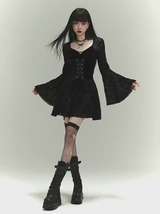 Gothic Lace Bell Sleeve Corset Dress
