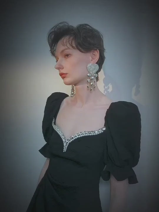 A statement of elegance and desire — the Midnight Heart Crystal Drop Earrings shimmer with every movement, reflecting light like a thousand tiny stars.