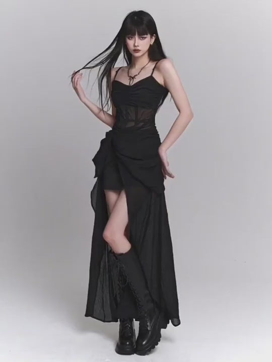 Midnight Siren Sheer Corset Drape Maxi Dress