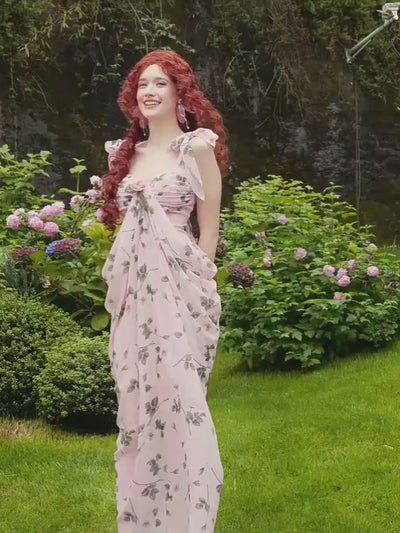Step into the pages of a romantic fairytale with our Rose Garden Muse Floral Maxi Dress. Crafted for the dreamers and wanderers, this enchanting piece captures the essence of cottagecore and fairycore elegance. Soft blush-pink chiffon cascades gracefully, adorned with delicate white blossom prints and leafy accents that evoke the charm of an English garden in full bloom. The ruched bodice features a sweetheart neckline, accented with a dainty rose applique and subtle lace trim, while adjustable ribbon-tied shoulders add a whimsical touch. Flowing into a Grecian-inspired drape, the skirt moves effortlessly with every step, perfect for strolling through flower fields or hosting an afternoon tea. Whether for a garden party, a vintage-inspired photoshoot, or simply living your everyday princess dream, this dress promises timeless allure and storybook romance.